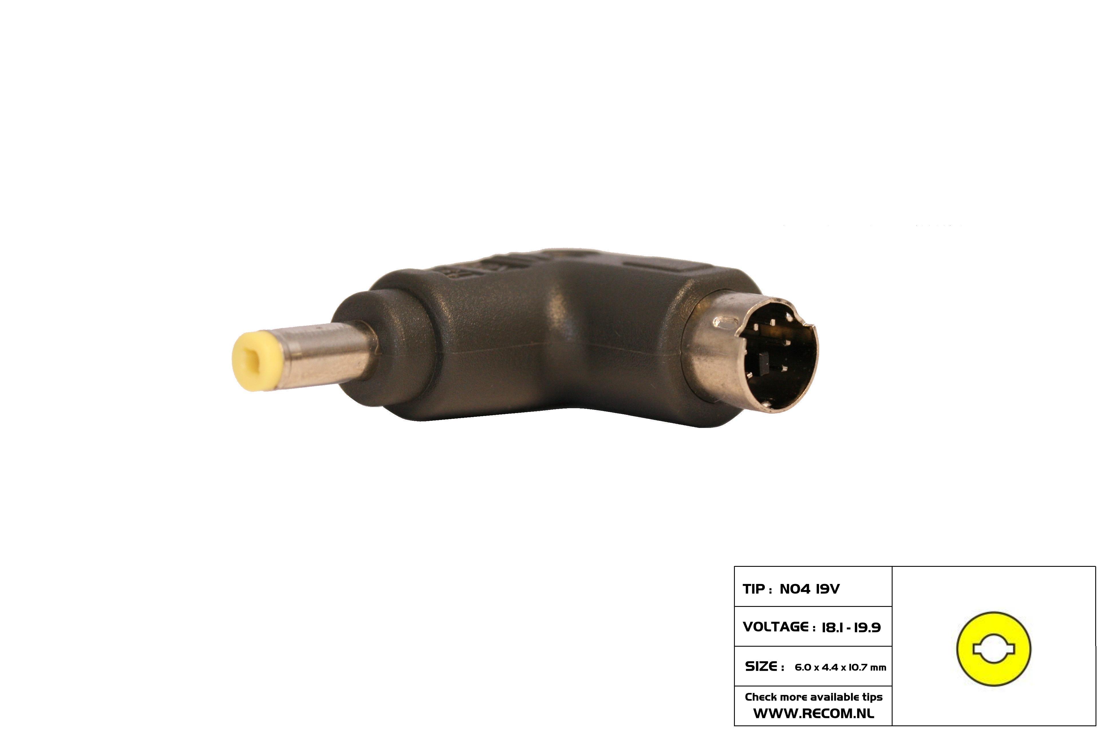 TIP N04 19volt (4.8 × 1.7 × 10.7mm) Compaq: 18.5V 1.1A , 18.5V 2.7A , 18.5V 3.8A , 18.5V 3.5A Asus:19V 2.64A NEC:19V 2.64A