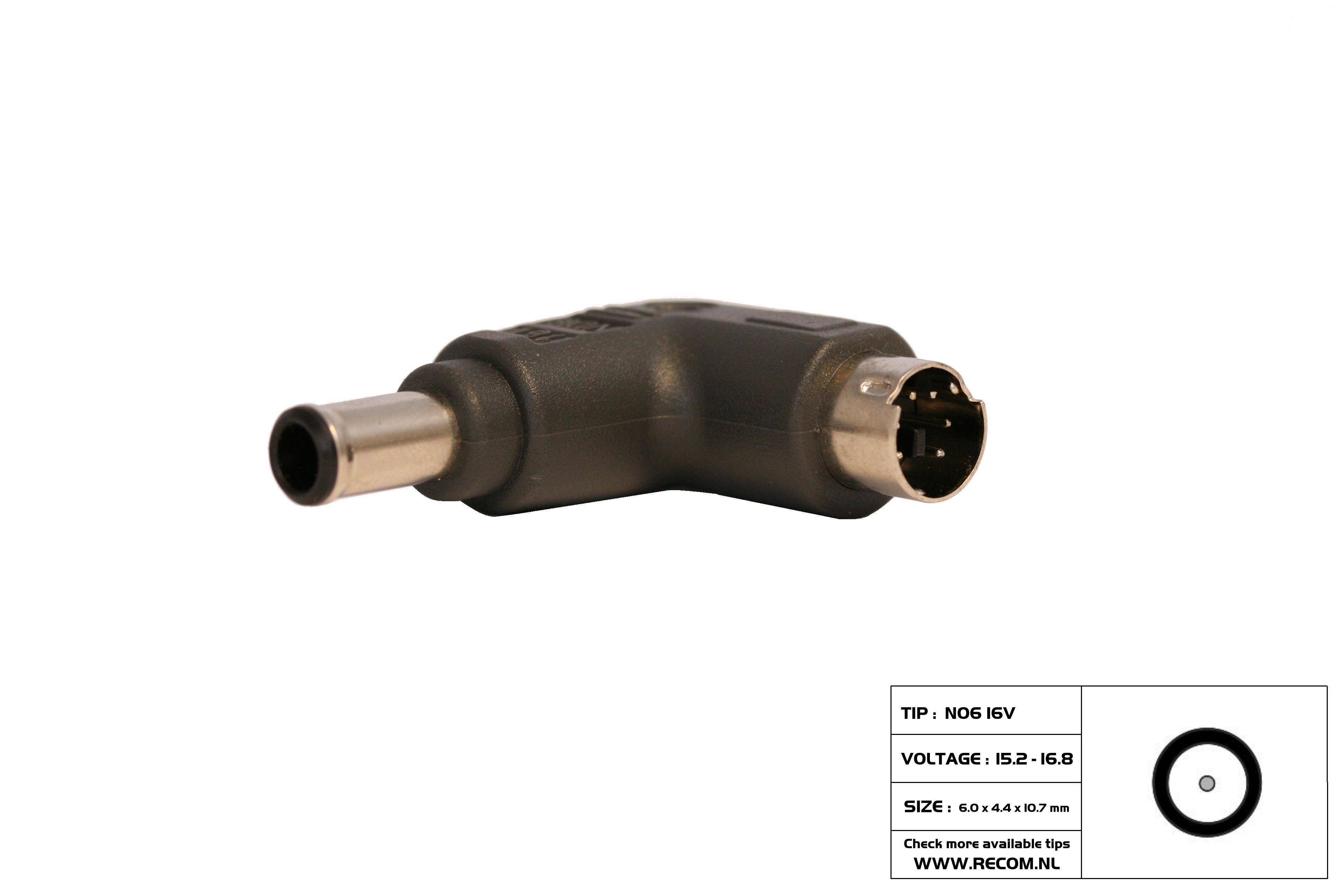 TIP N06 16volt (6.0 × 4.4 × 10.7mm) Panasonic: 16V 2.5A , 15.1V 2.6A , 15.1V 2.64A Fujitsu:16V 2.5A , 16V 2.8A , 16V 3.36A , 16V 3.75A Sony:16V 2.5A , 16V 2.1A , 16V 3.75A , 16V 4A