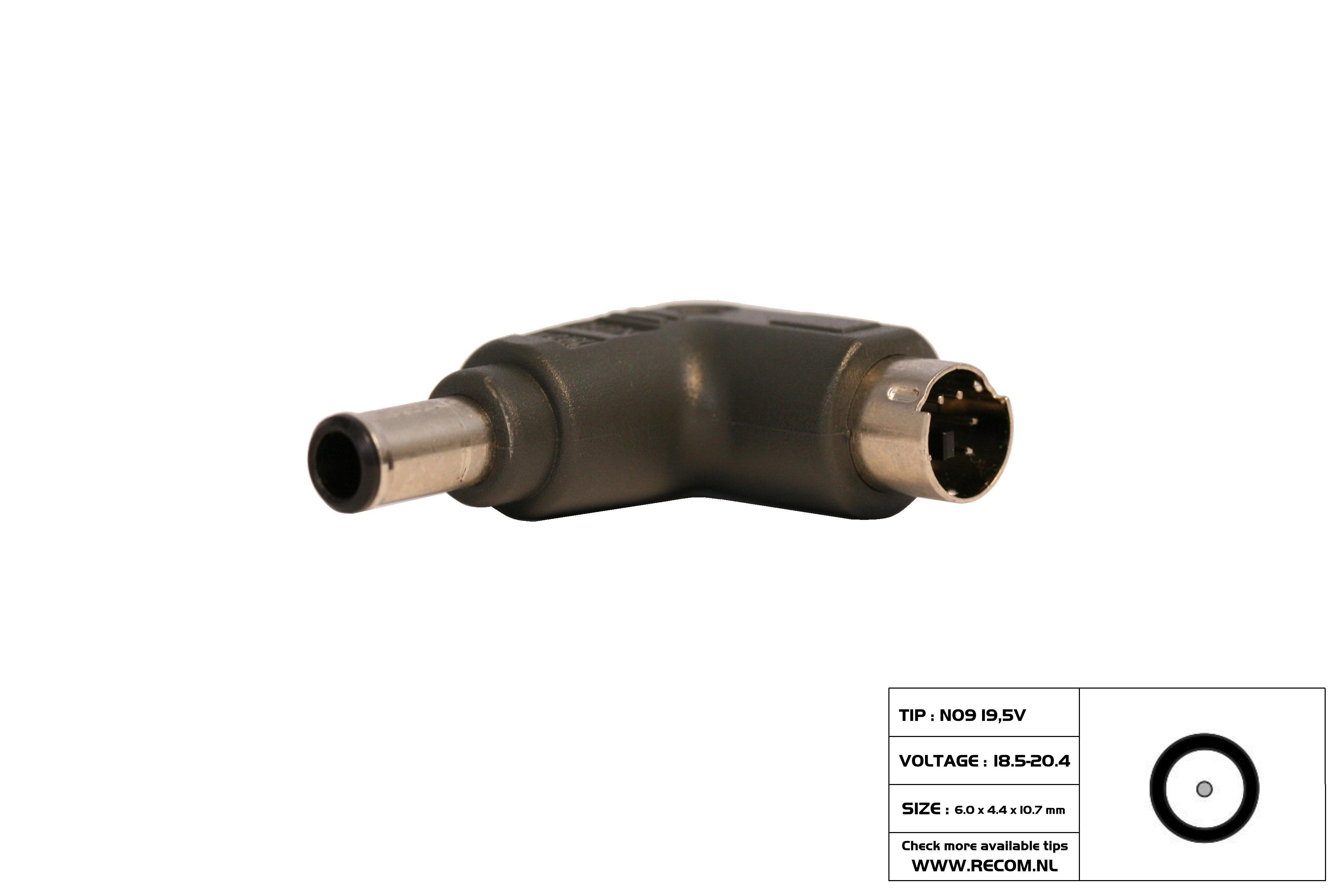 TIP N09 19,5volt (6.0 × 4.4 × 10.7mm) Sony: 19.5V 2.15A , 19.5V 2.3A , 19.5V 3A , 19.5V 4.1A , 19.5V 4.7A Fujitsu:19V 3.16A , 19V 3.69A , 19V 4.22A