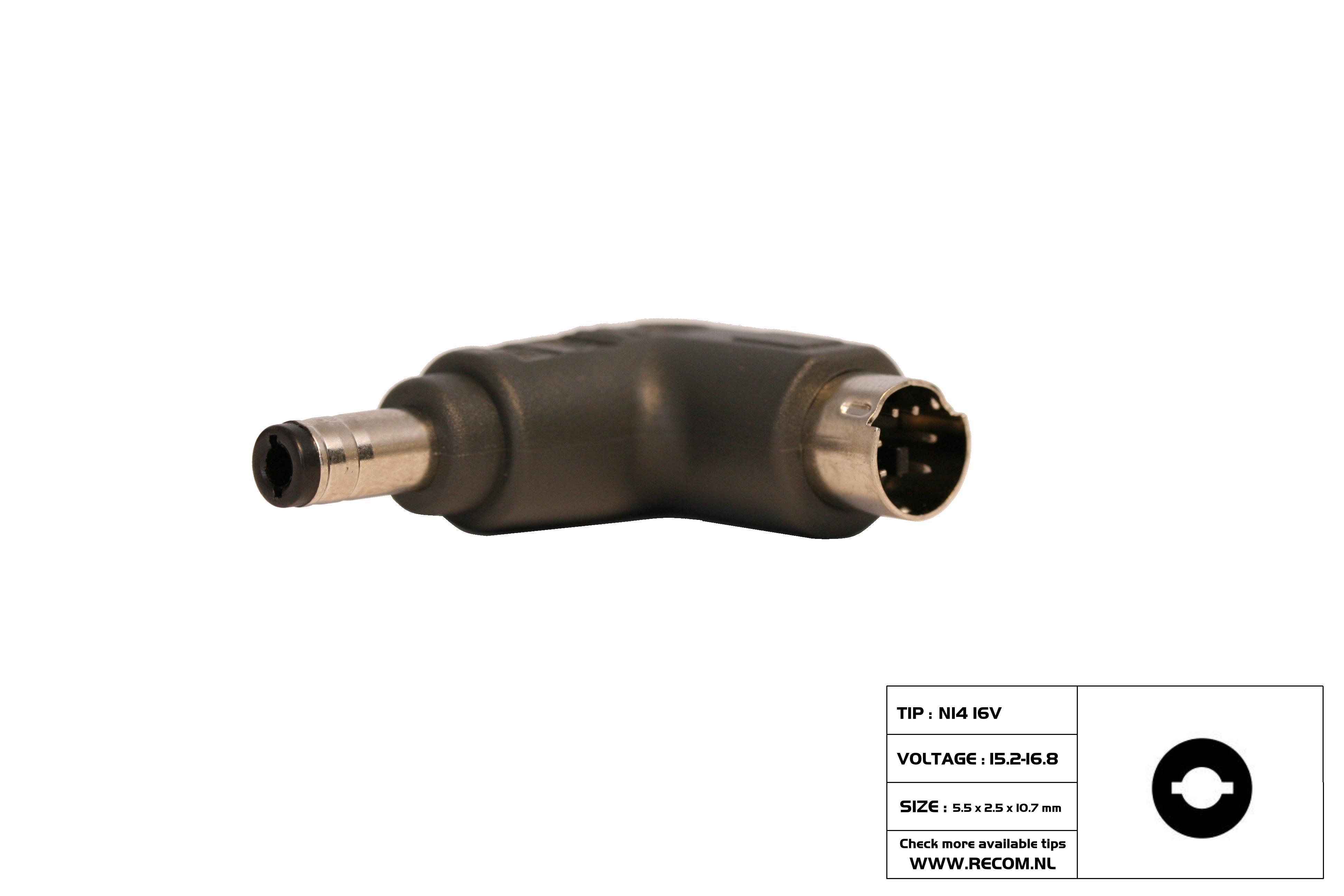 TIP N14 16volt (5.5 × 2.5 × 10.7mm) Delta: 15V 1A IBM:16V 1.88A , 16V 2.2A , 16V 3.36A , 16V 3.5A , 16V 4.5A Acer:16V 3.75A