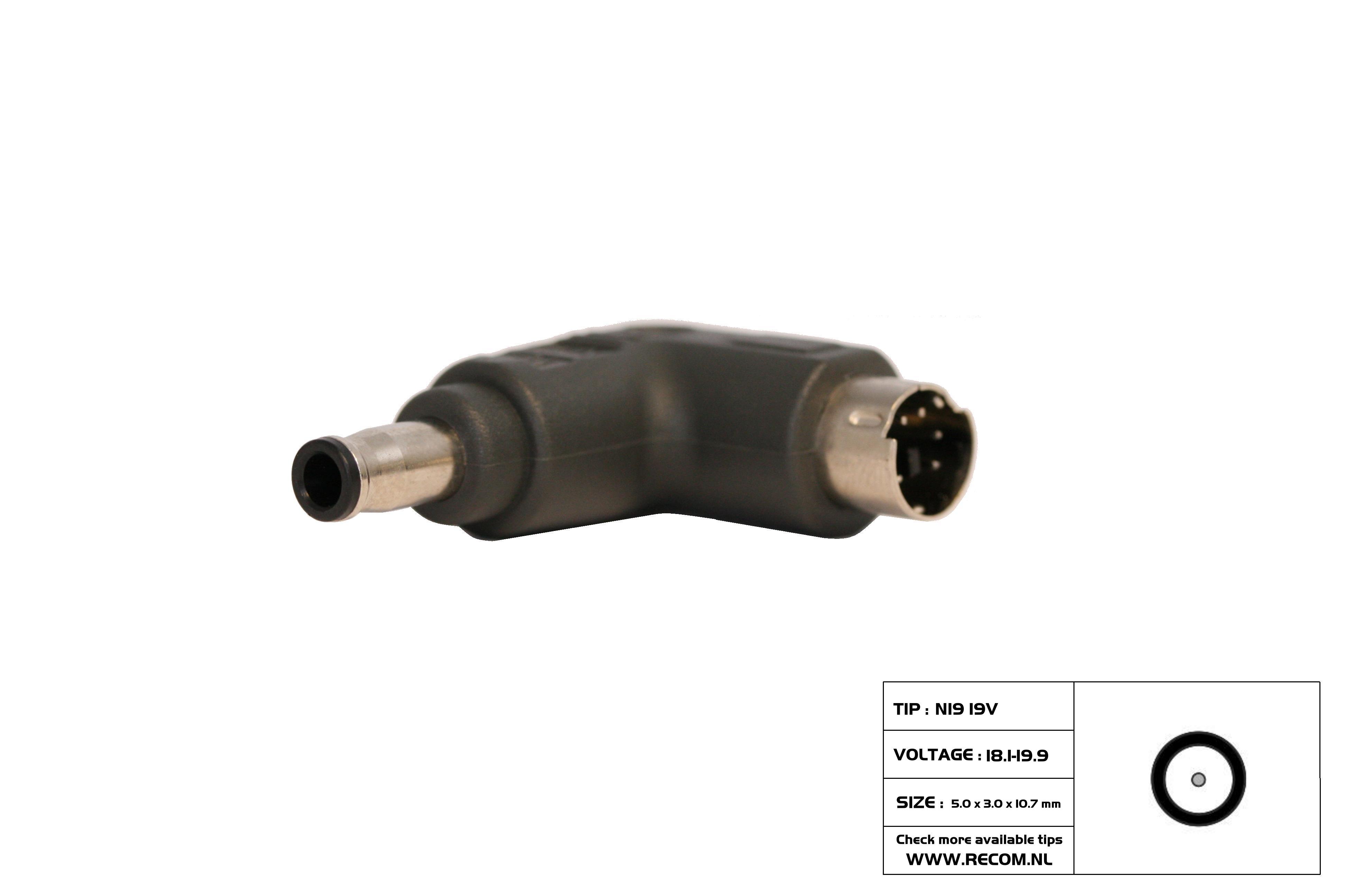 TIP N19 19volt (5.0 x 3.0 x 10.7mm) Samsung:19V 3.16A , 19V 3.42A , 19V 3.75A , 19V 4.22A , 19V 4.74A