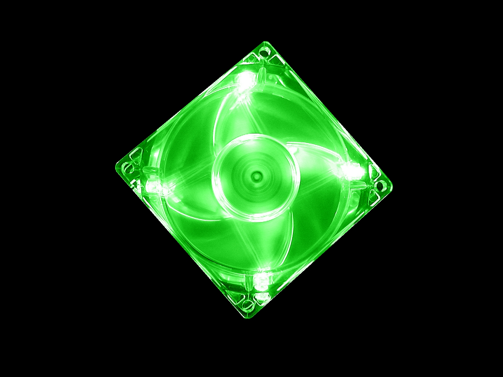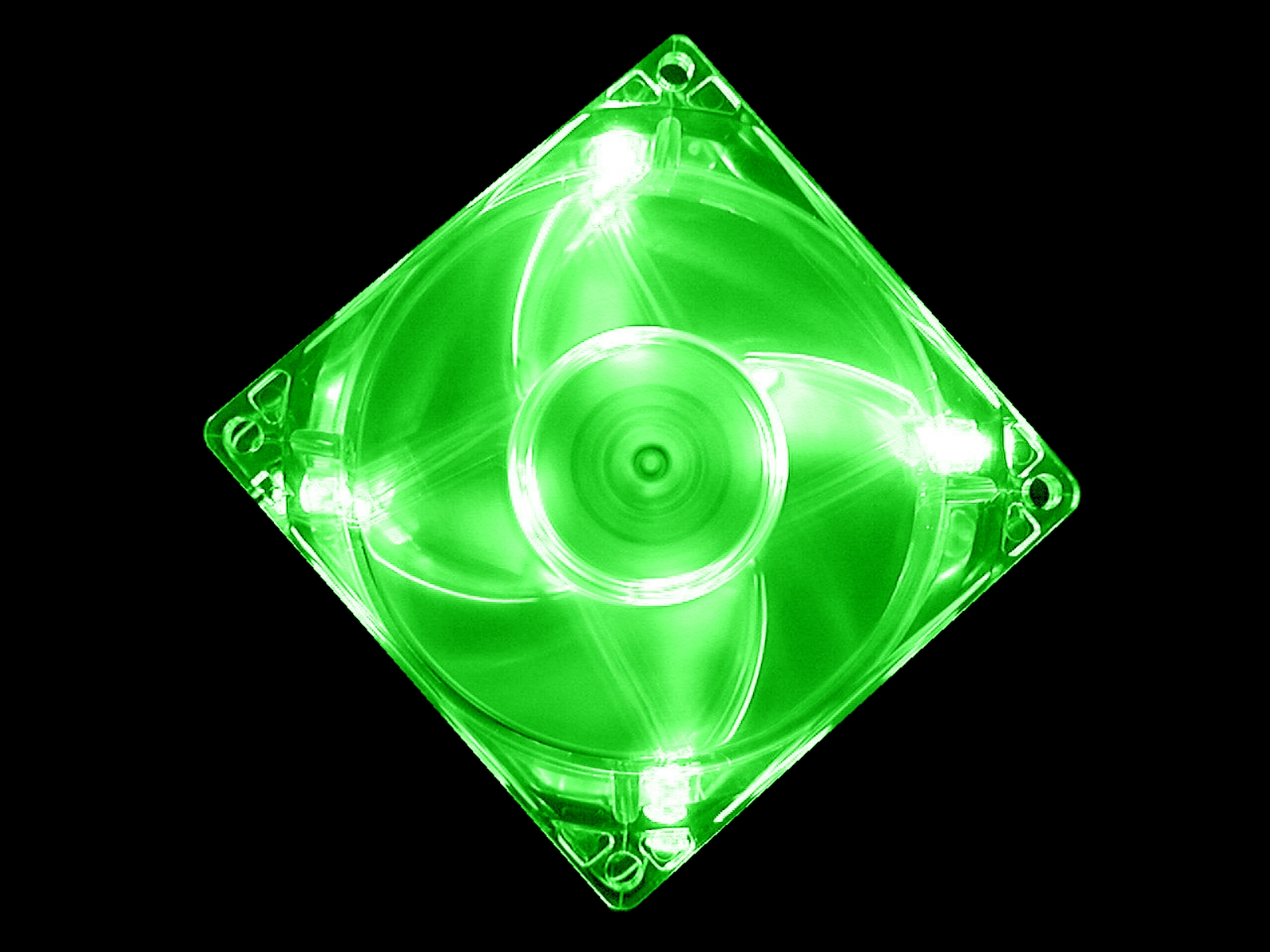RC-8025GN-LED QuadLED Silent Blower 80mm Fan - Green Color: see trough & 4x green leds, Size: 80 x 80 x 25 mm, Airflow: 21 Cfm, Speed: 1500Rpm, Noise level: 12dBa, Bearing: H-Bearing, Extra's: rubber suspension screws, vibration damping pads & metal screws & 3-to-4 pins power convertor, Lifetime: 30.000 hours (expected), Power: 0.14A 10% in put current, 1.68W 10% power consumption Download printable PDF data sheet (same for al QuadLed fans) |