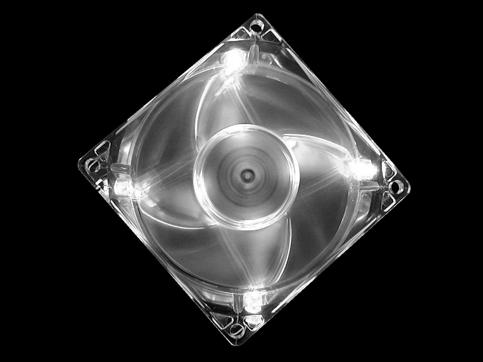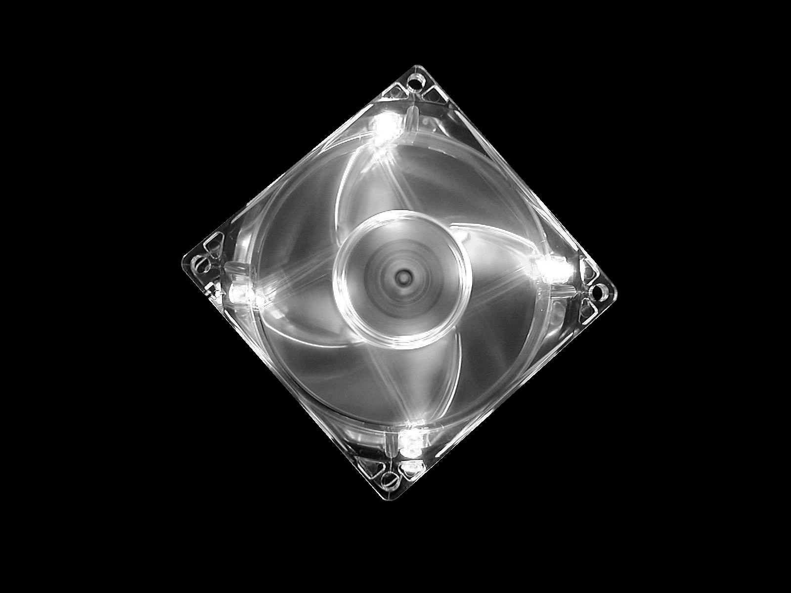 RC-8025W-LED QuadLED Silent Blower 80mm Fan - White Color: see trough & 4x white leds, Size: 80 x 80 x 25 mm, Airflow: 21 Cfm, Speed: 1500Rpm, Noise level: 12dBa, Bearing: H-Bearing, Extra's: rubber suspension screws, vibration damping pads & metal screws & 3-to-4 pins power convertor, Lifetime: 30.000 hours (expected), Power: 0.14A 10% in put current, 1.68W 10% power consumption Download printable PDF data sheet (same for al QuadLed fans) |