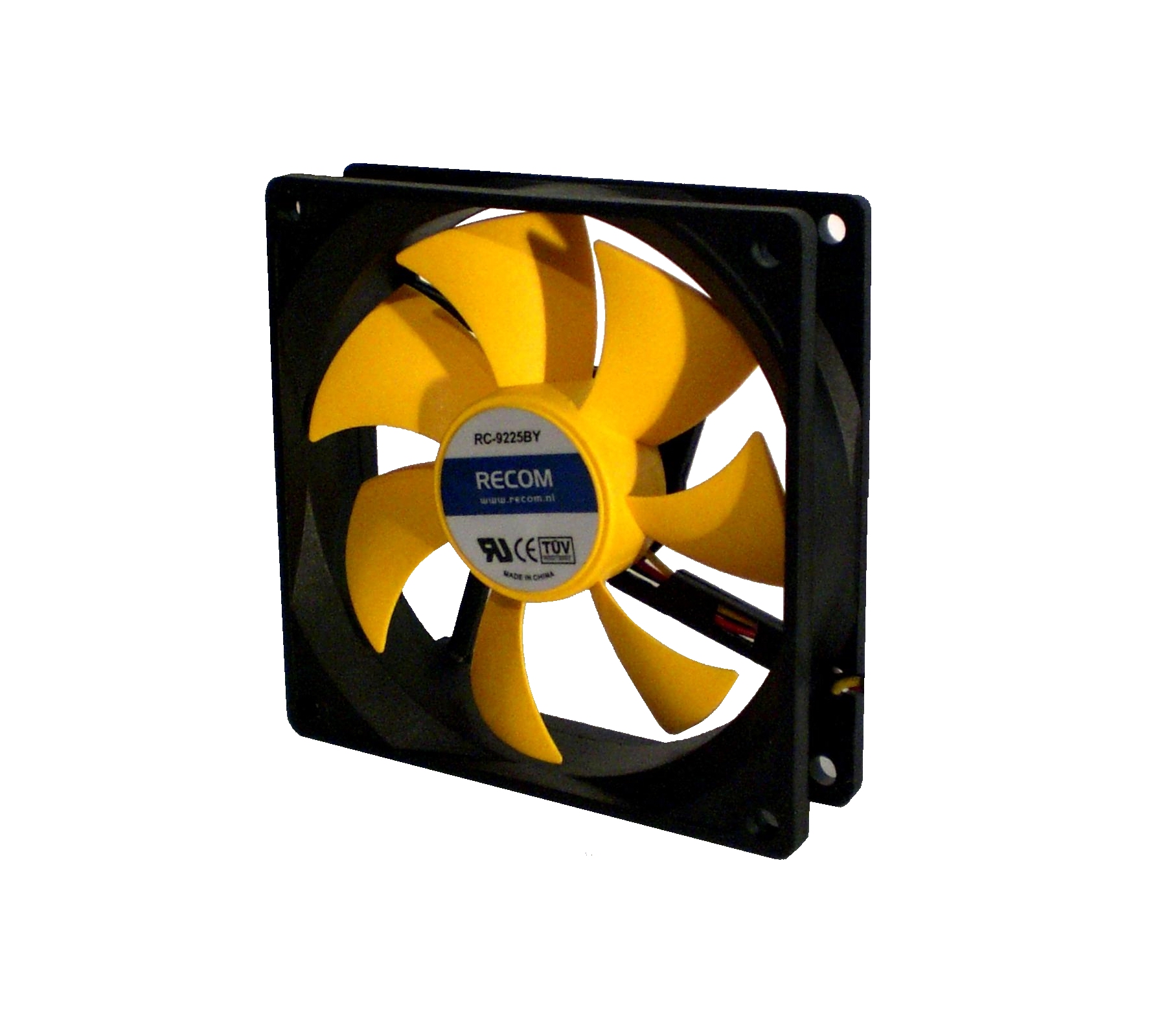 RC-9225BY Yellow Blower 92mm Fan Color: Black frame & Yellow fan blades, Size: 92 x 92 x 25 mm, Airflow: 32 Cfm, Speed: 1900Rpm, Noise level: 18dBa, Bearing: H-Bearing, Extra's: vibration damping pads & metal screws, Lifetime: 30.000 hours (expected) |