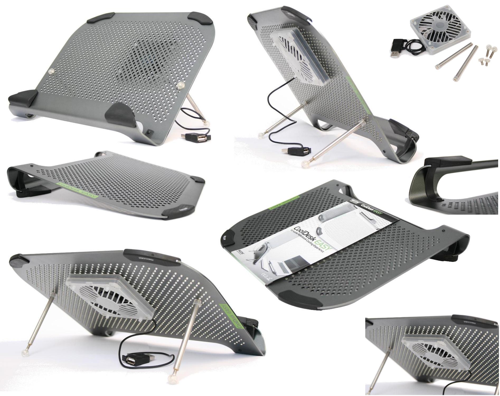 RC-CD-PRO-SL CoolDesk Professional Notebook Stand & Cooler - Silver Recom introduces a new notebook stand in the popular CoolDesk series: the CoolDesk PRO. This fully aluminum notebook cooling stand keeps your notebook cool and quiet. It let's you work comfortably on your desk providing 22 steps of tilting. Accomodates most notebook dimensions and widescreen editions from 10" to 20"! Also available in Black: RC-CD-PRO-BK. Download printable PDF flyer |